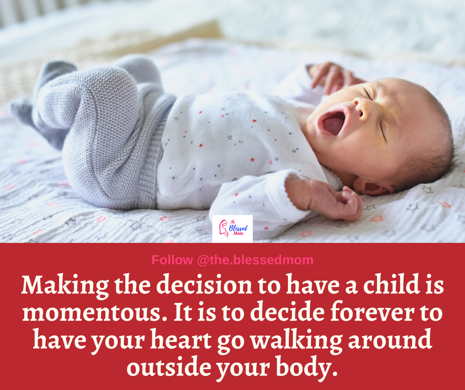 “Making a decision to have a child–it’s momentous. It is to decide forever to have your heart go walking around outside your body.”– Elizabeth Stone